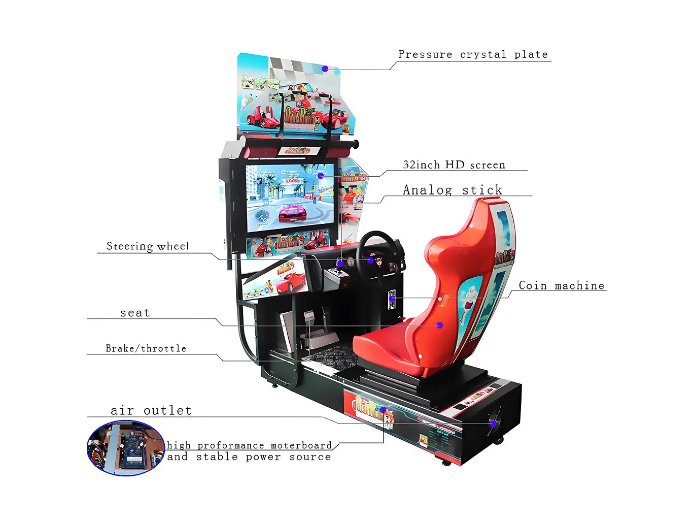 Experience the thrill of high-speed racing with the 32″ Outrun Racing Arcade Machine. Featuring an HD display, realistic steering, and dynamic gameplay, it’s perfect for arcades, game centers, and entertainment venues.