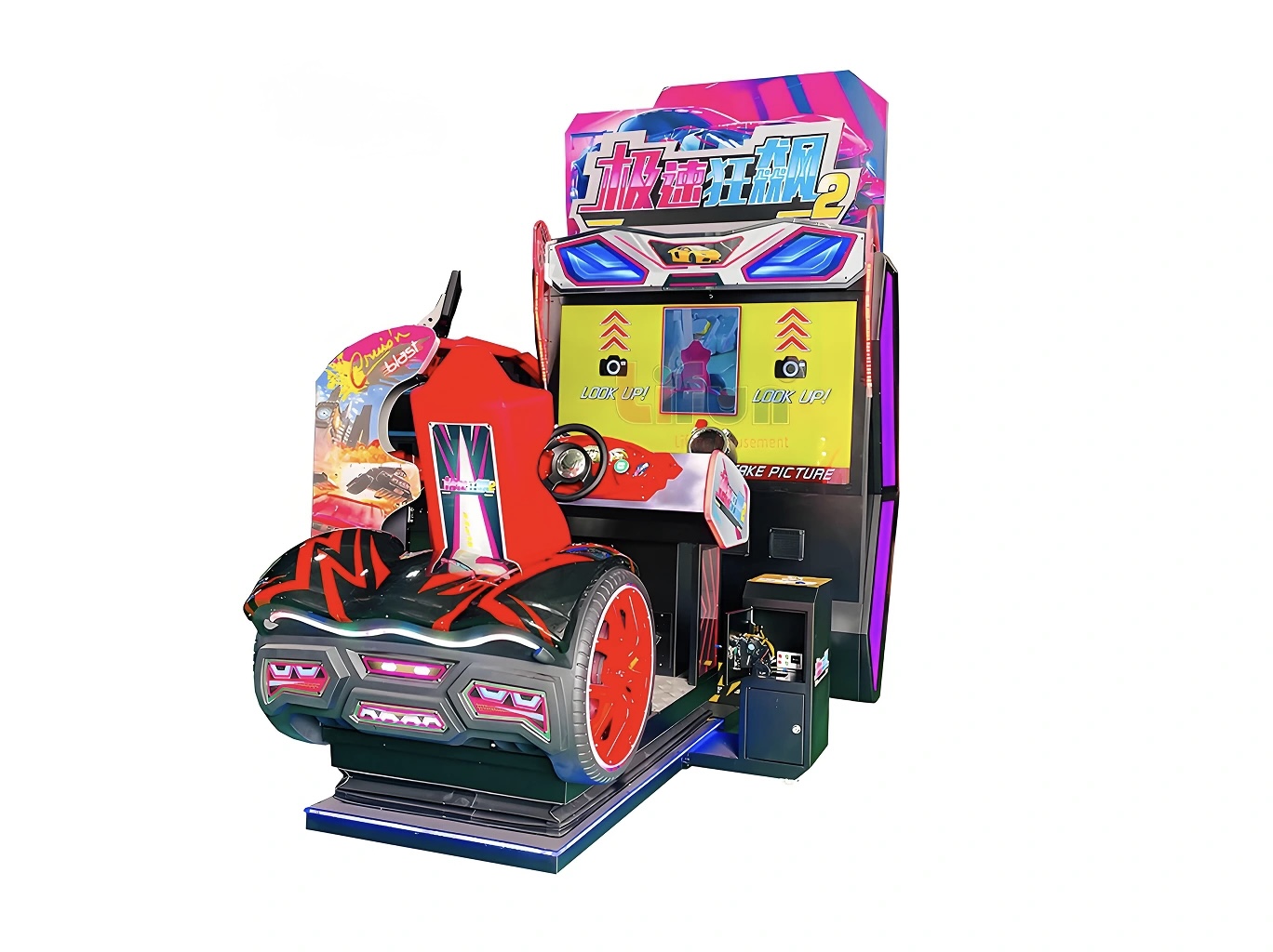 The 55” Dynamic Cruisin’ Blast Racing Arcade Machine features a massive 55-inch HD screen, realistic full-motion seat, and thrilling 4K graphics. Perfect for arcades, FECs, and racing enthusiasts.