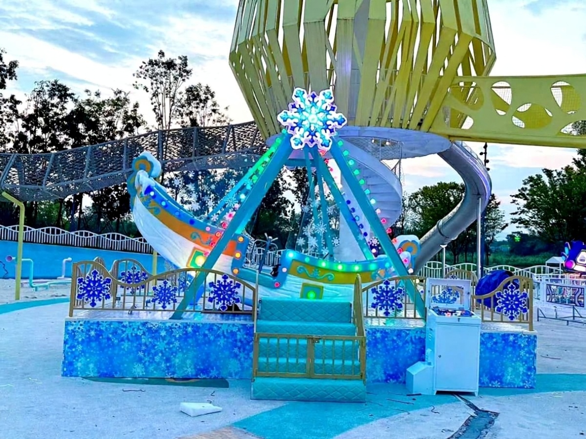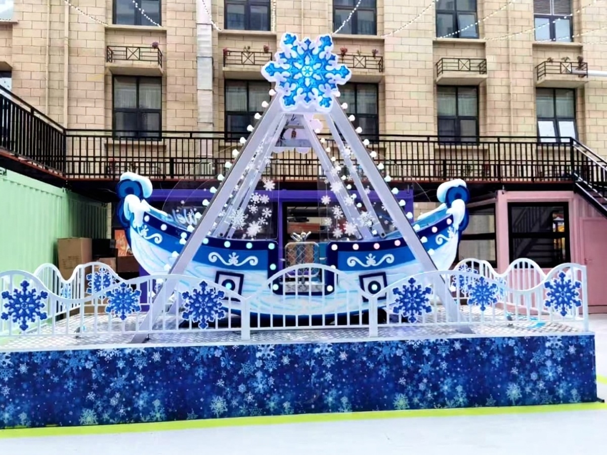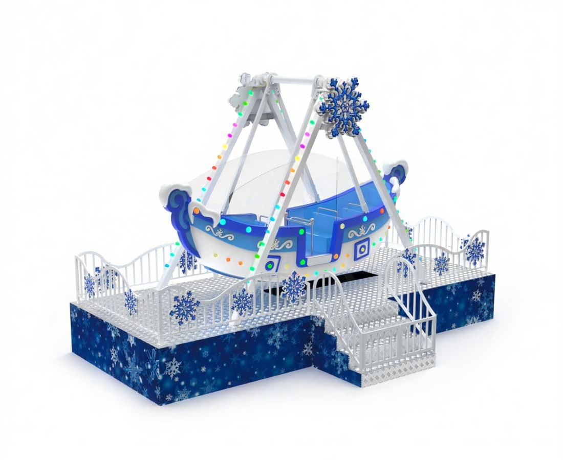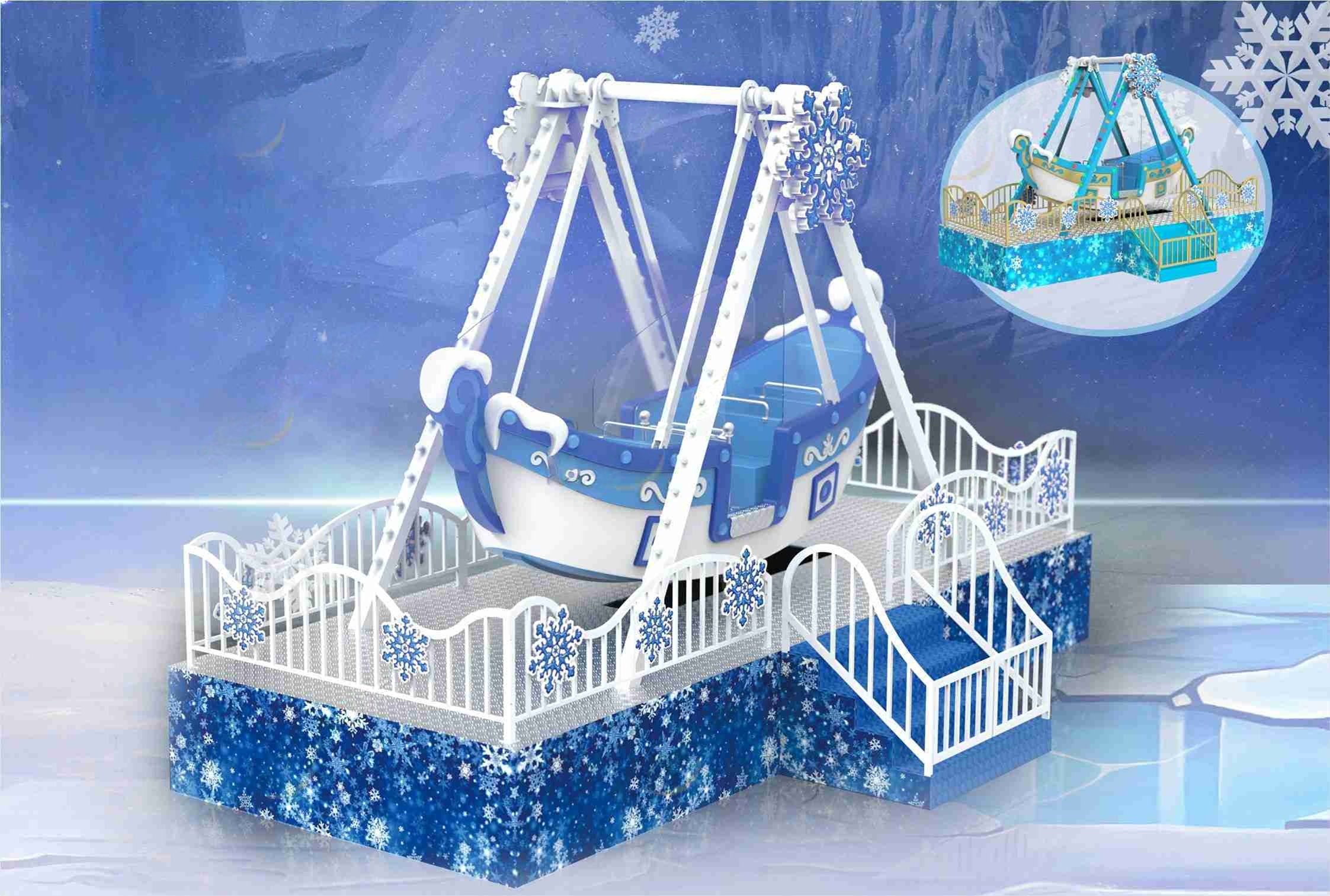 Amazing Ice Pirate Ship Ride is a snow-themed mini pirate ship ride designed for kids. It features a vibrant fiberglass body crafted by a Disneyland-grade supplier, protected with triple-layer automotive paint and waterproof LED bulbs for lasting brightness. The ride draws inspiration from classic Arctic legends, with a Viking-style icebreaker setting off to find the mythical snowflake sapphire. A perfect addition to indoor playgrounds, family parks, and themed zones, offering reliable quality and immersive storytelling.