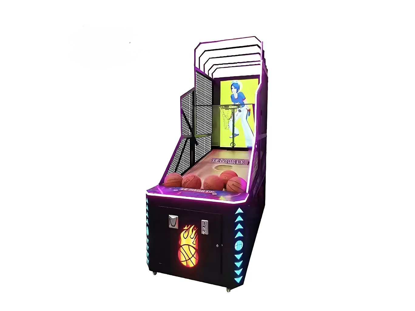 This LCD basketball arcade machine combines dynamic RGB lighting, digital scoreboard, and a full LCD ranking display. With its professional design and coin acceptor, it’s ideal for modern arcades and game centers.