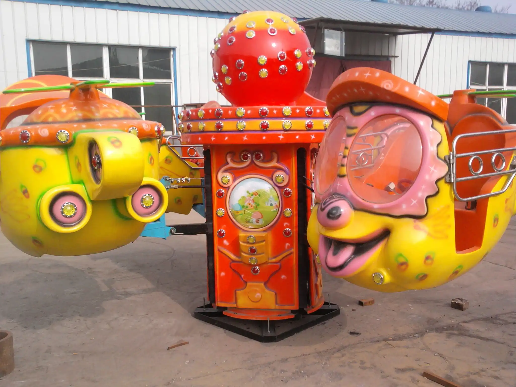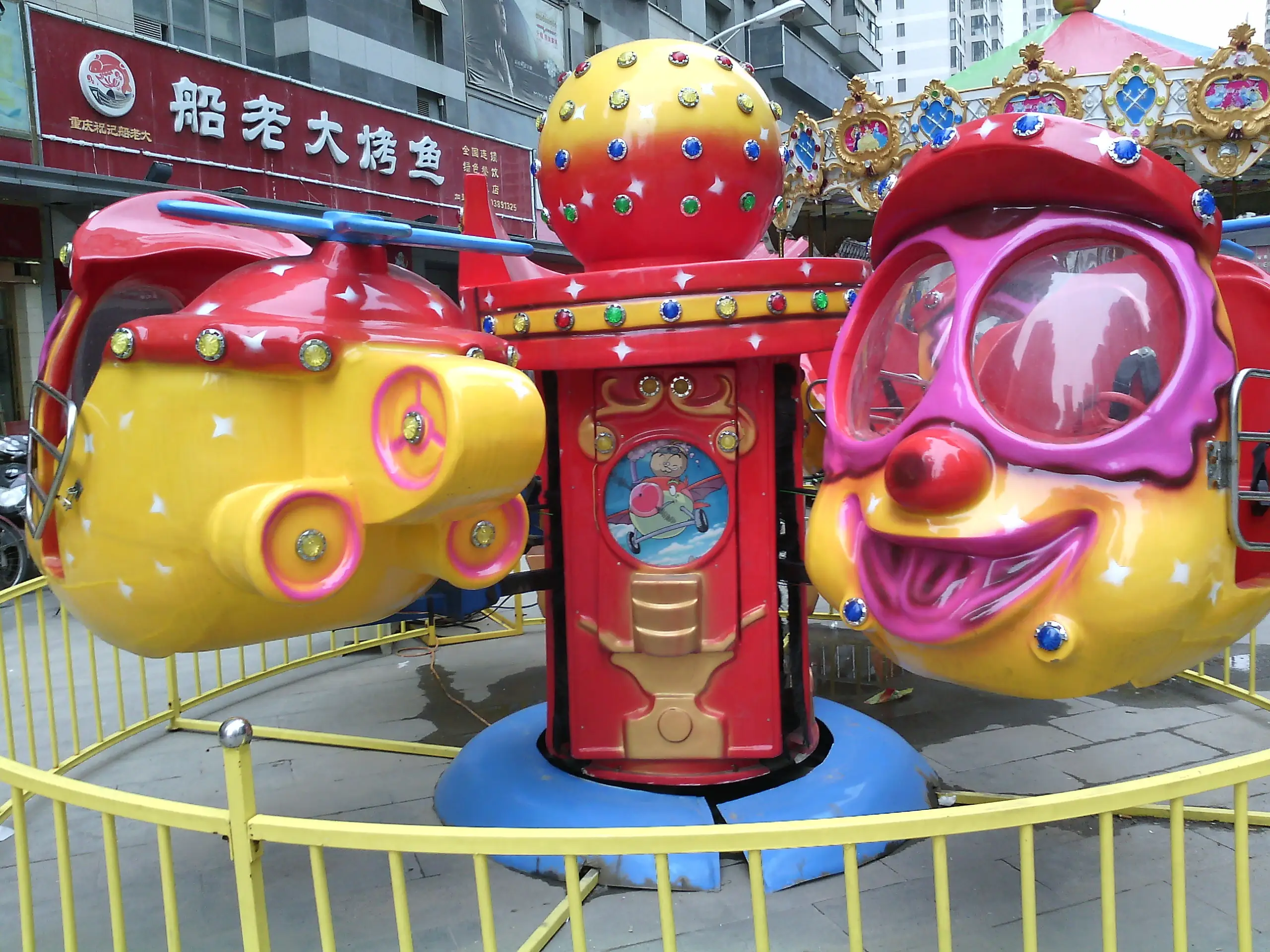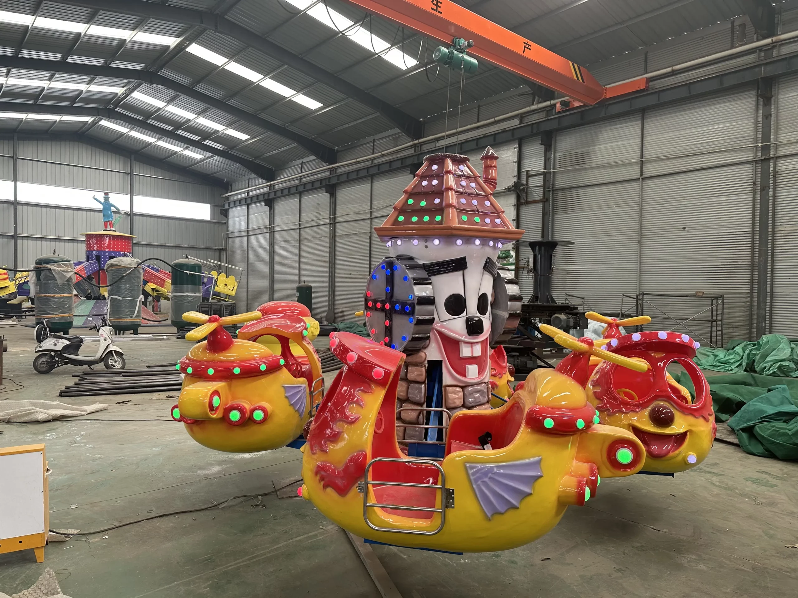 This big – eyed aircraft amusement ride is a charming attraction. It features a cartoon – styled design with vivid aircraft – shaped cabins that have large, expressive eyes, making them look lively and cute. The ride operates in a rotating manner, allowing riders to enjoy a smooth and fun experience. With its bright and colorful appearance and the adorable big – eyed design, this ride is especially appealing to children, bringing a sense of joy and whimsy to amusement venues.