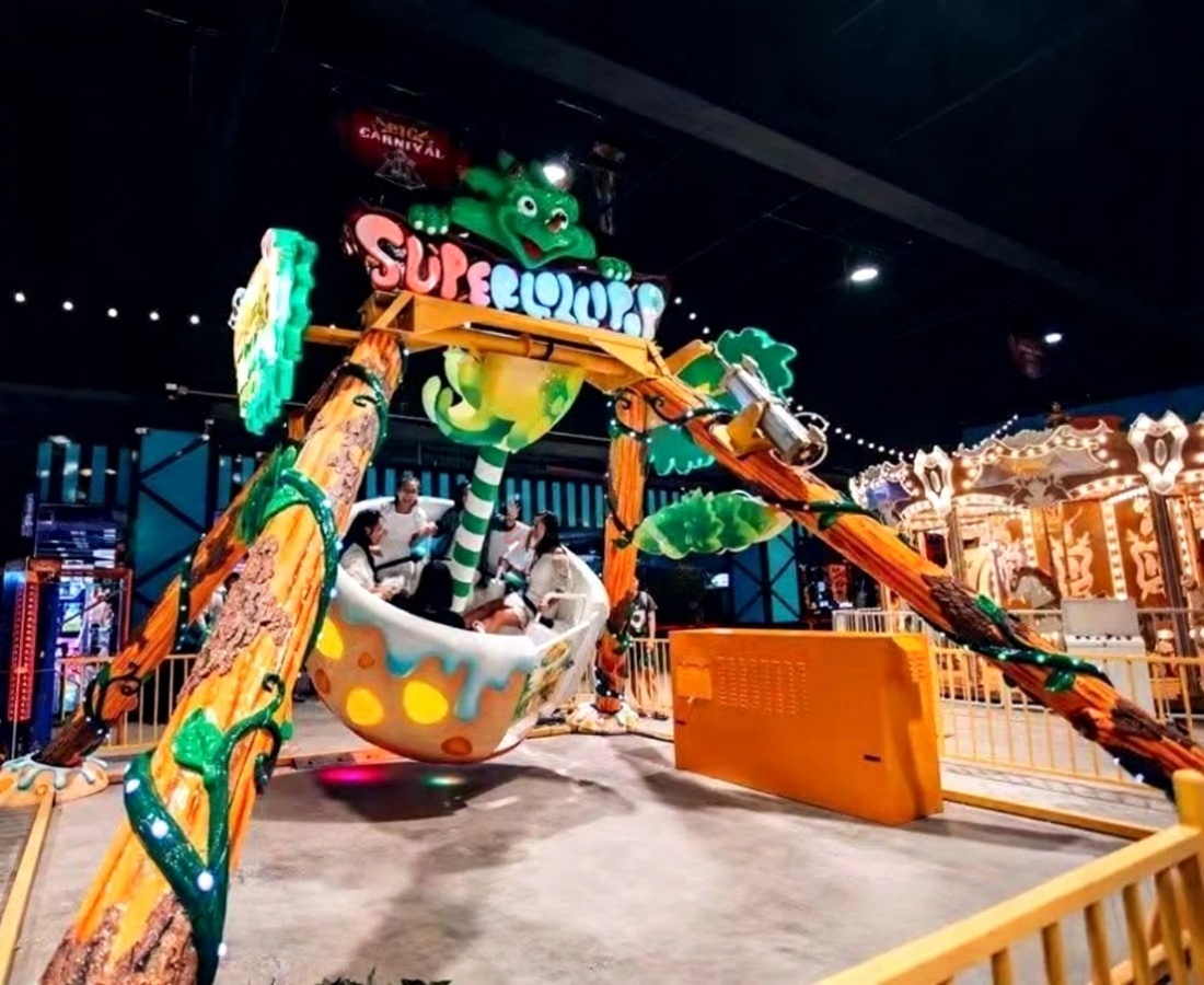 Dinoosaur Pendulum is a jungle dinosaur-themed theme park pendulum ride designed to thrill and engage visitors of all ages, with a powerful Q234 steel support frame, high safety, and durability. The ride uses sensitive magnetic switches for accurate swing positioning and amplitude control. Set against a lush jungle backdrop with roaring dinosaurs, this ride recreates the excitement of prehistoric adventures. Ideal for amusement and theme parks, Dinosaur Pendulum combines immersive visuals with dynamic motion, making it a standout pendulum ride attraction.