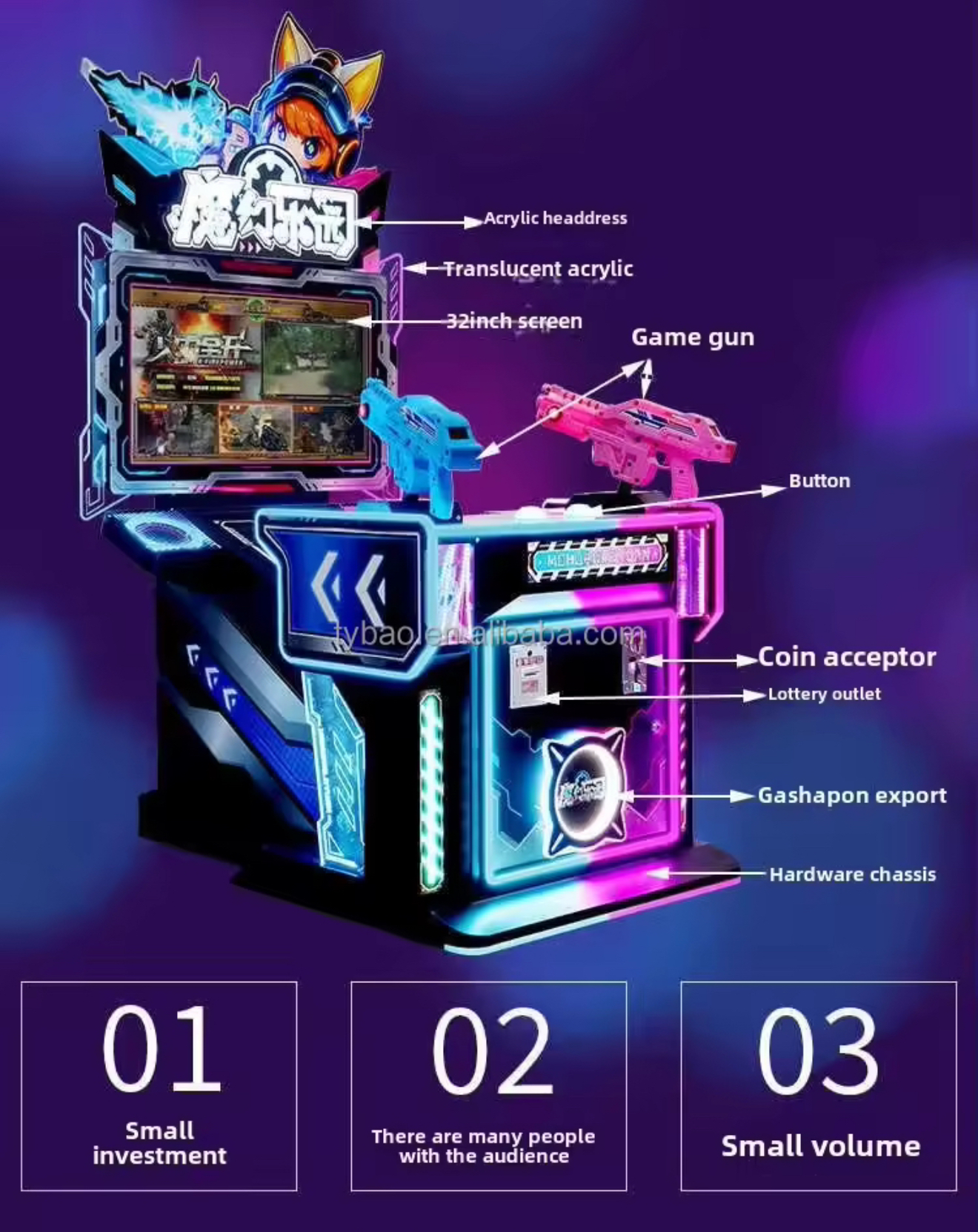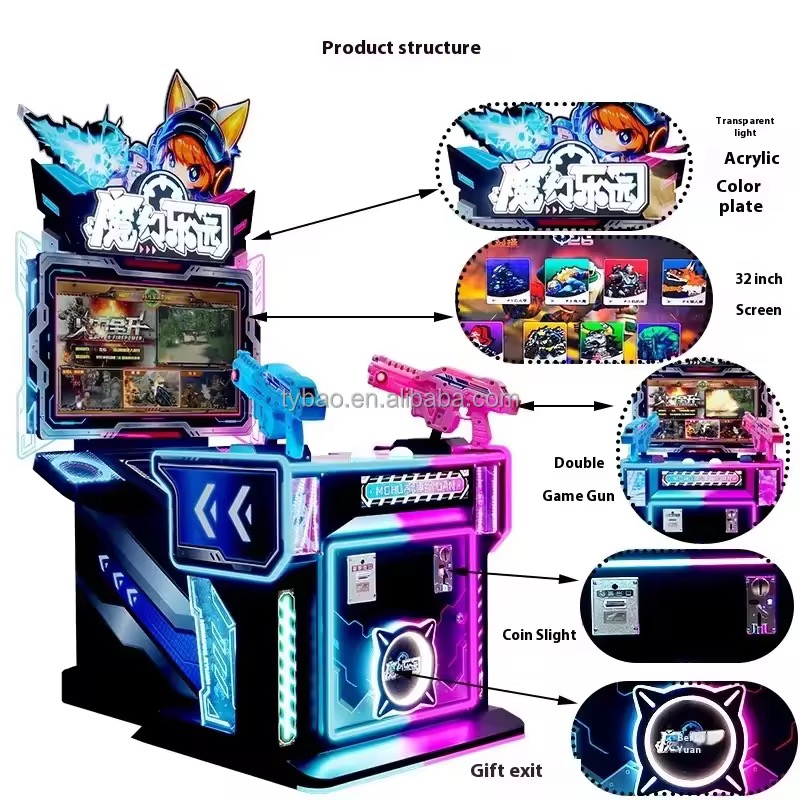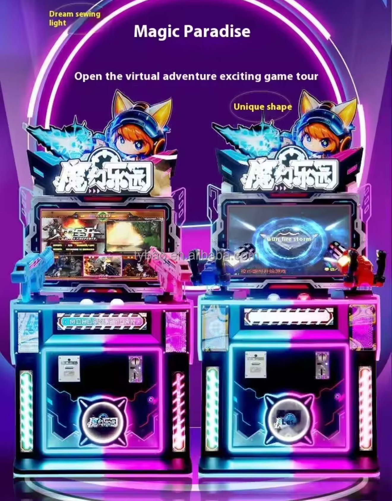 The Magic Park 32-inch shooting arcade machine offers a fun and interactive coin-operated experience for children and families. Designed for indoor amusement centers, malls, and entertainment venues, it features a durable material–acrylic structure, a vibrant blue design, and supports up to two players. With a 32-inch screen and a 120W power system, it provides reliable performance and engaging gameplay suitable for all ages.
