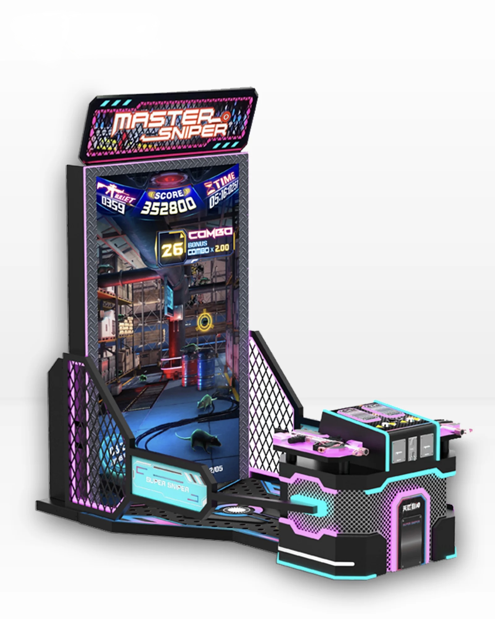 Master Sniper is a two-player fighting game in which players use automatic rifles to bomb targets on the screen.
